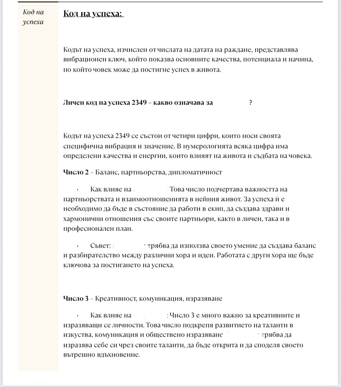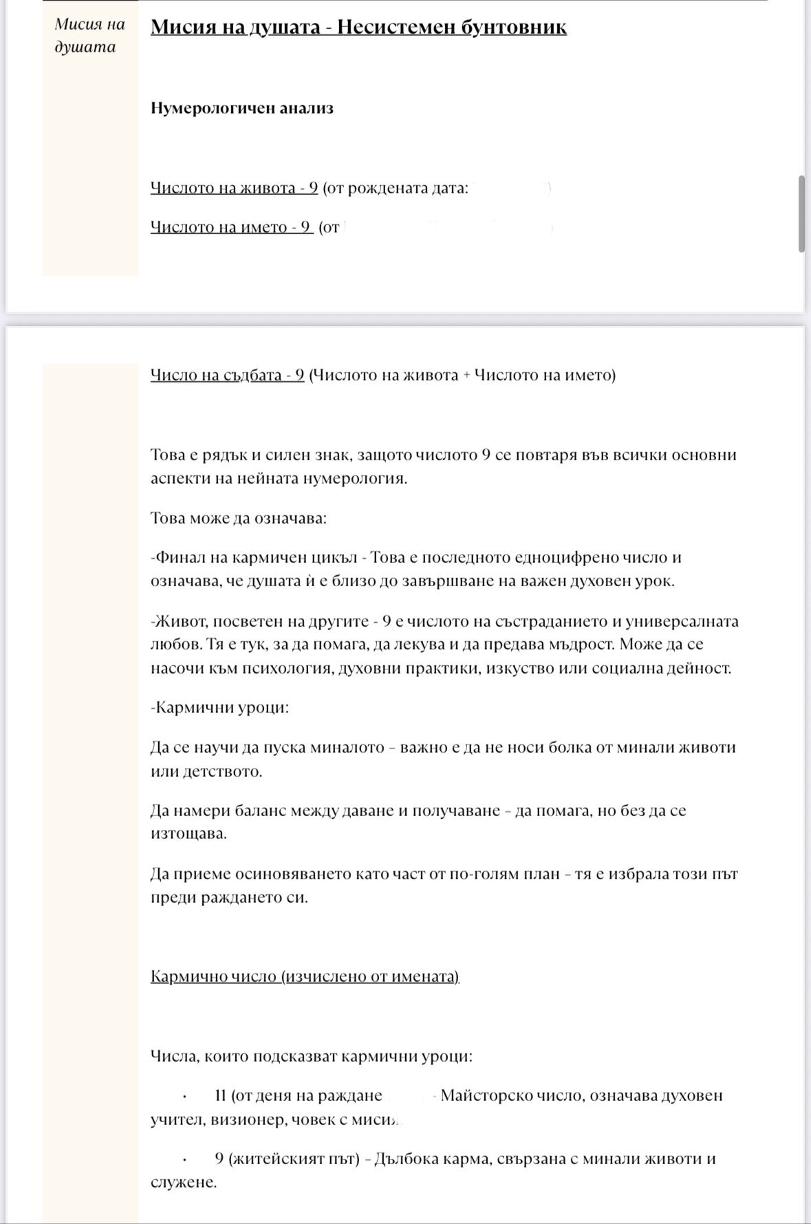 Този персонализиран анализ съчетава мощта на нумерологията, астрологията и енергийната психология, за да ви помогне да разберете и разкриете пълния си потенциал, за да постигнете хармония в живота си.