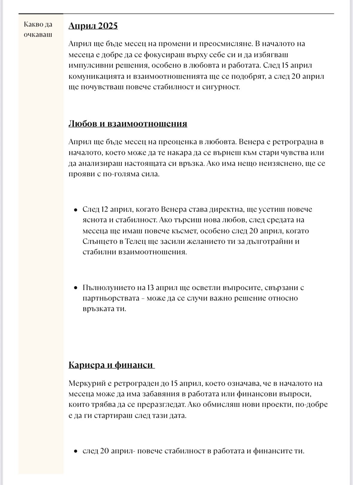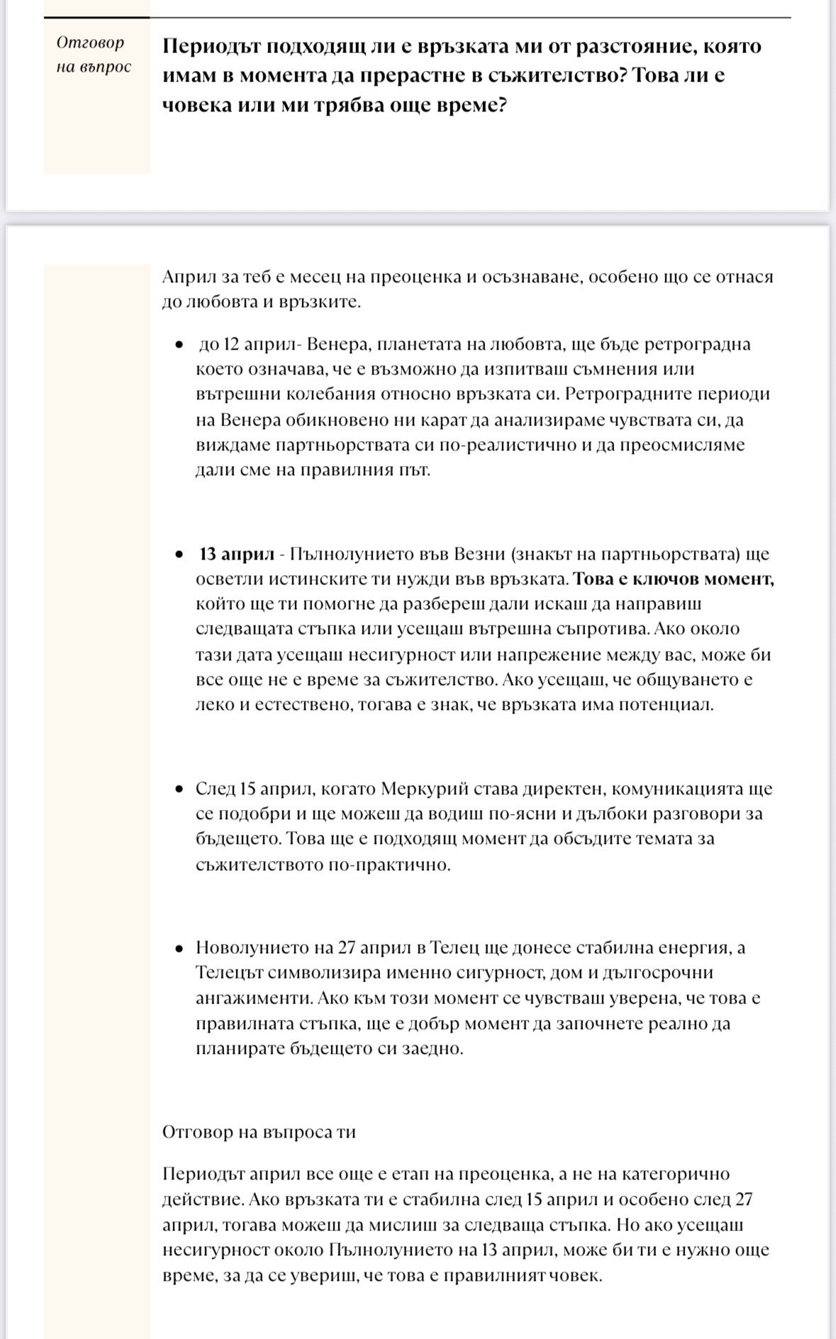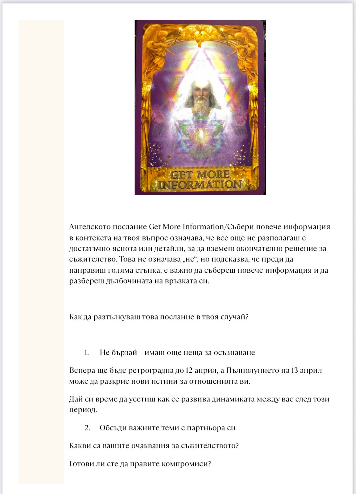 Това е анализ с енергийни и практични насоки, които получаваш в писмен формат и използваш в свое темпо.